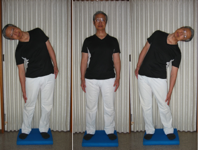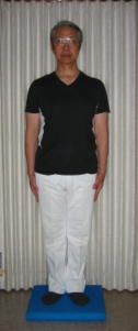 (眼を閉じると、よりハッキリとふらつきを自覚出来ますが、転倒し危険ですので補助する人がいない場合は行わないように。)