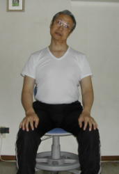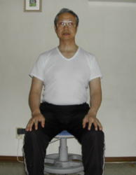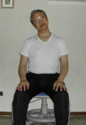 ・その時の頸、胸や肩の力が抜けている状態を感じ取り、手を膝に降ろして顔を正面に向け、柔らかな呼吸を続けてみましょう。